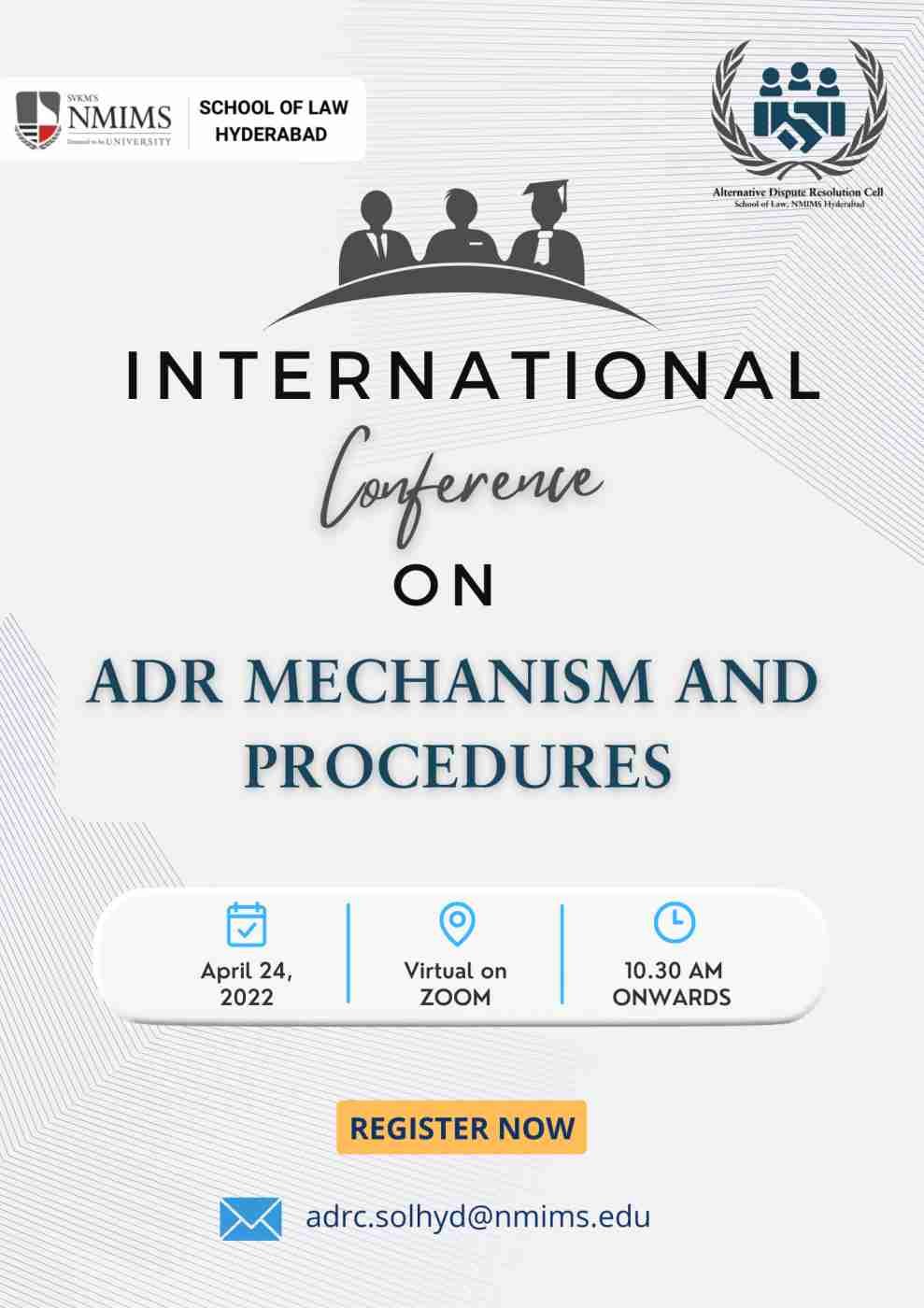 International Conference on ADR Mechanism and Procedures by NMIMS School of Law: Submit Abstract by 16th April 2022
